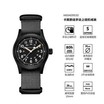 汉米尔顿(Hamilton)汉密尔顿卡其野战手动上链机械表38黑盘瑞士手表军表男款手表礼物