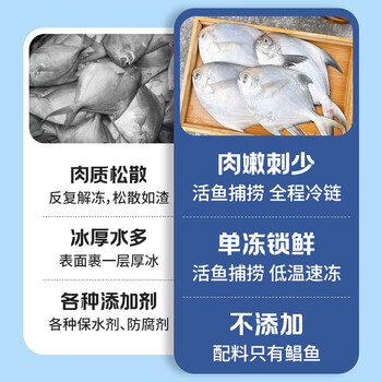 纯色本味冷冻舟山白鲳鱼净重800g银鲳鱼8-12条地标产品
