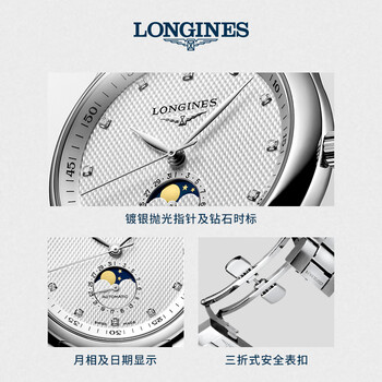 浪琴(LONGINES)瑞士手表 名匠系列月相腕表 男士钢带机械表 L29094776