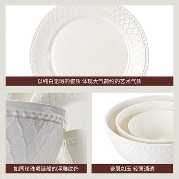 玛戈隆特 餐具碗碟套装高端骨瓷欧式纯白浮雕枫丹白露4人份19头