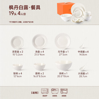 元平盘*1汤盘*4凉菜盘*2汤碗*1面碗*2饭碗*4大调羹*1中调羹*4