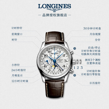 浪琴(LONGINES)瑞士手表 名匠系列计时码表 男士皮带机械表 L26734783