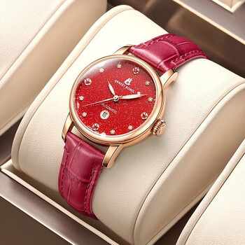 依波路(ERNEST BOREL)瑞士手表女 满天星红宝石皮带女表自动机械女士手表本命年送老婆