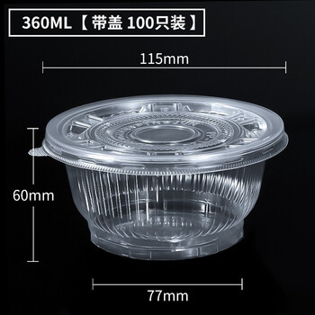芳草地一次性360ML打包碗100只装带盖