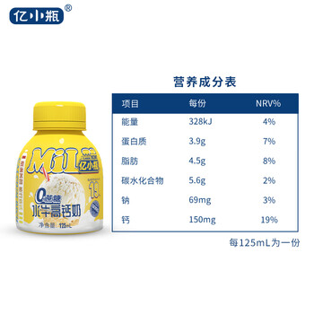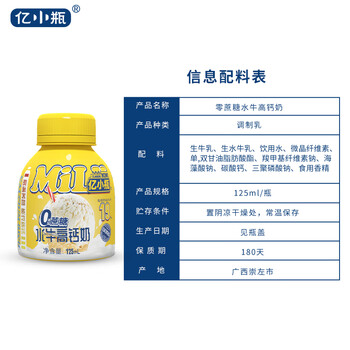 亿小瓶 0蔗糖水牛高钙奶125ml*12瓶/箱 儿童牛奶 广西水牛奶