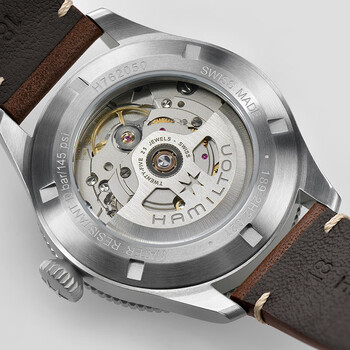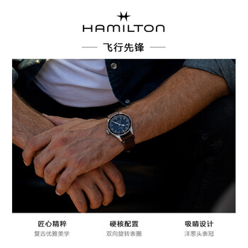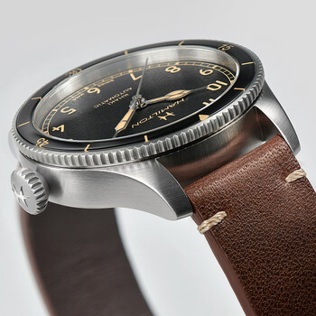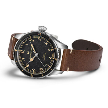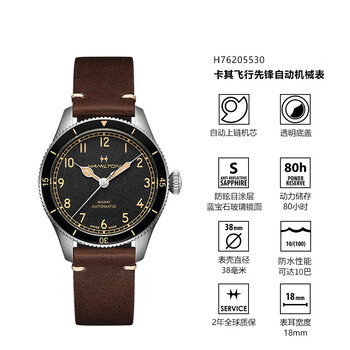 汉米尔顿(Hamilton)卡其航空飞行先锋自动机械表38黑盘皮带男士手表瑞士表军表礼物