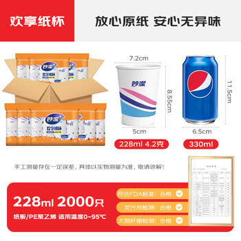 妙洁纸杯一次性杯子茶水加厚整箱装20包*100只食品级批发共2000只