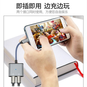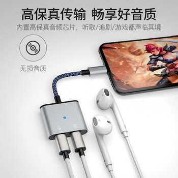 得语 苹果14耳机转接头二合一充电听歌iPhone11 12promax 13 xs x双Lightning音频转换器分线器游戏吃鸡语音
