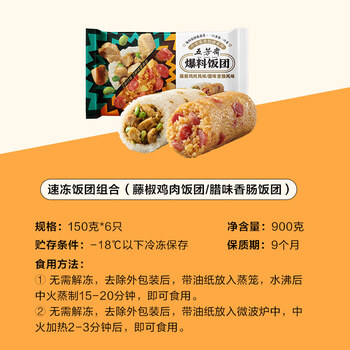 150克速冻腊味香肠饭团*3+150克速冻藤椒鸡肉饭团*3