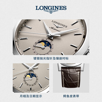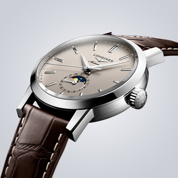浪琴(LONGINES)瑞士手表 1832系列 月相男士皮带机械表 L48264922