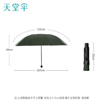 天堂 防紫外线晴雨伞三折 太阳伞黑胶折叠三折晴雨伞 纽曼绿