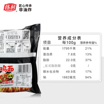 陈村 火鸡面 100g*20袋 非油炸中式超辣经典干拌面宽面方便面夜宵速食