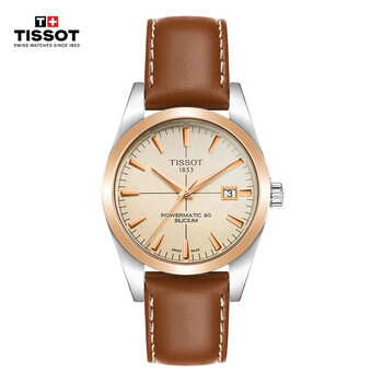 天梭(TISSOT)手表 绅士系列男表 瑞士自动机械男士皮带腕表商务表生日礼物