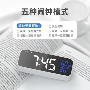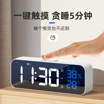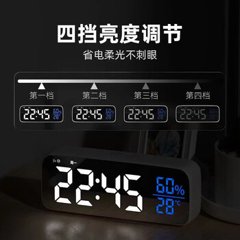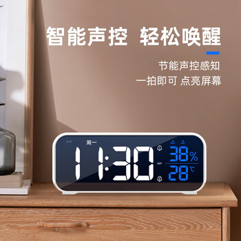 BBA电子时钟桌面电视柜台钟摆台式led数字简约温湿度计多功能充电大音量客厅智能闹钟开学季 简约黑
