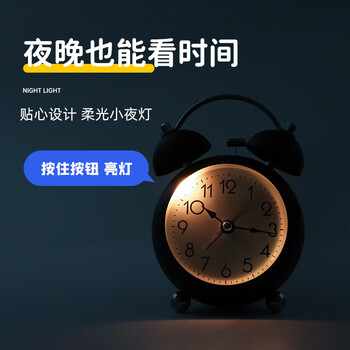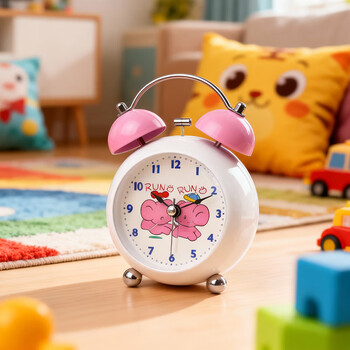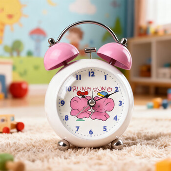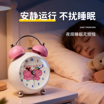 码仕闹钟儿童卡通夜光学生床头钟机械打铃懒人闹钟球面粉色开学季礼物