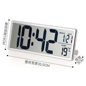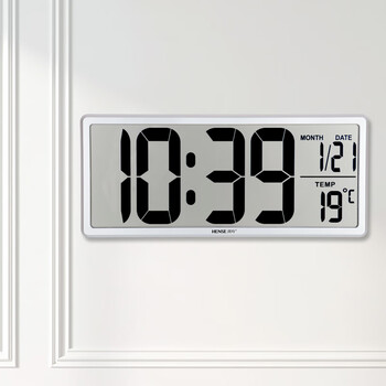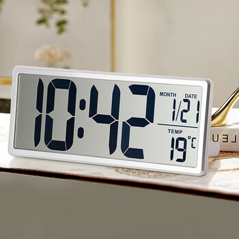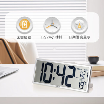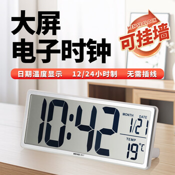 汉时(Hense)大屏电子钟客厅挂钟桌面时钟挂墙钟表台钟闹钟创意座钟HA88A款银色英文版开学季