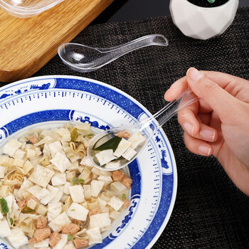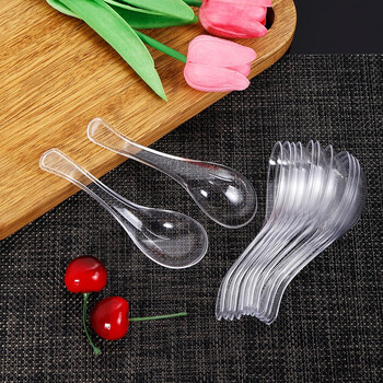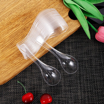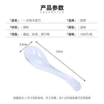 佳茉 一次性勺子100只水晶勺塑料汤勺外卖快餐小调羹咖啡勺甜品勺子