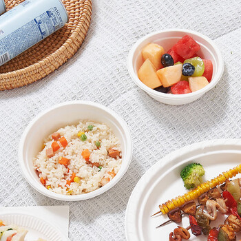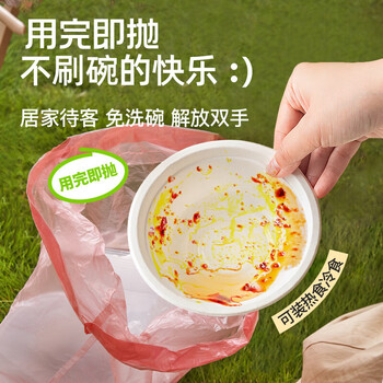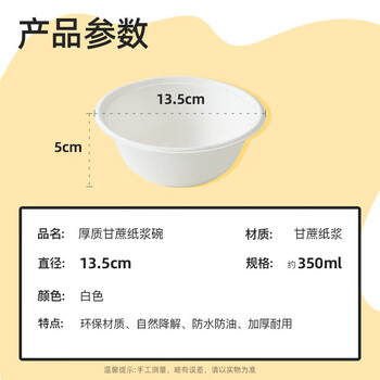 特美居(temeiju)一次性碗甘蔗纸碗饭碗户外加厚可降解碗盘餐具野餐盒50只装350型