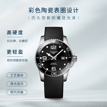 浪琴(LONGINES)瑞士手表 康卡斯潜水系列 男士橡胶表带机械表L37814569