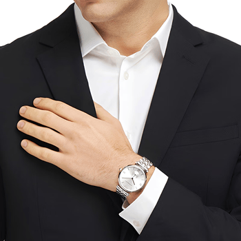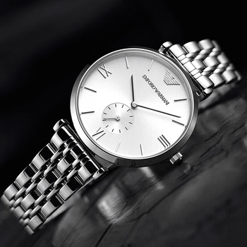 EMPORIO ARMANI阿玛尼手表男士简约商务系列 银色钢带表 生日礼物送男友AR1819