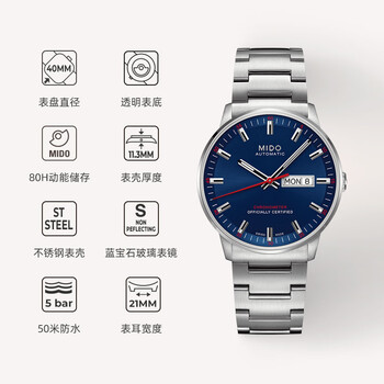 美度(MIDO)瑞士手表 指挥官系列 天文台 商务休闲 自动机械钢带男表