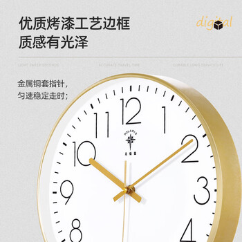 北极星(POLARIS)挂钟客厅家用自动对时时钟现代简约挂钟时尚智能钟表30cm金色