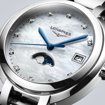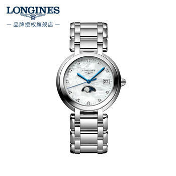 浪琴(LONGINES)瑞士手表 心月系列 月相女士钢带石英表L81164876