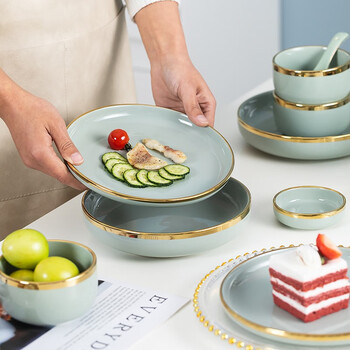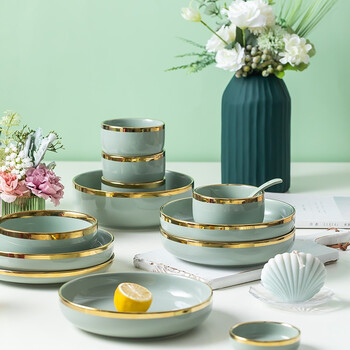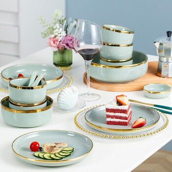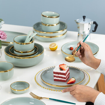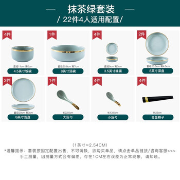 厨具---餐具---餐具套装冠朴(GUANPU)抹茶绿宽金边22件套