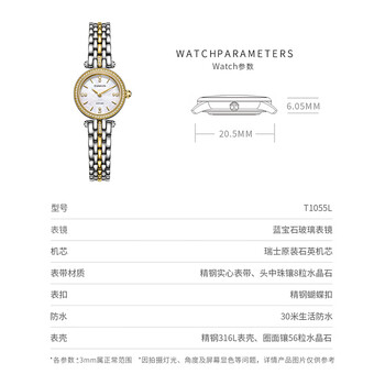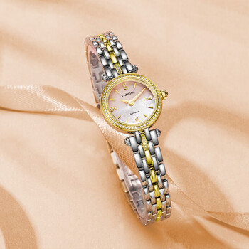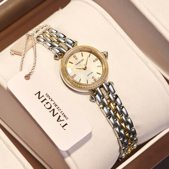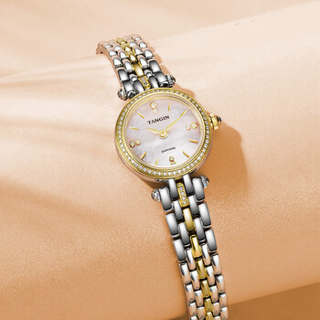 天珺(TANGIN)瑞士手表 女士手表 石英时尚镶钻女表钢带手表送女友 T1055LYSEBA