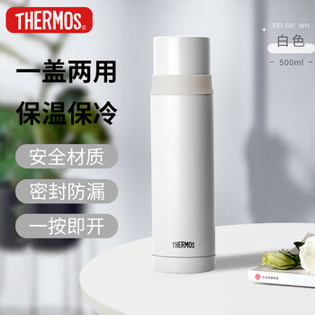 膳魔师(THERMOS)500ml保温杯商务办公带杯盖水杯男女士简约保冷杯 FEI-501 WH白色