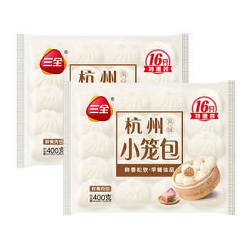 三全杭州发面小笼包猪肉馅400g*2袋约32只