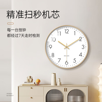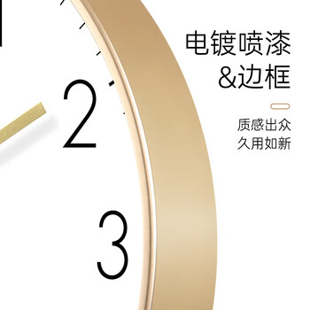 BBA 挂钟客厅现代钟表挂墙家用卧室时钟挂表简约石英钟 30cm香槟金