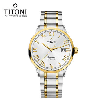 梅花(Titoni)瑞士手表 空中霸王系列 自动机械间金钢带男士腕表 83733-SY-561