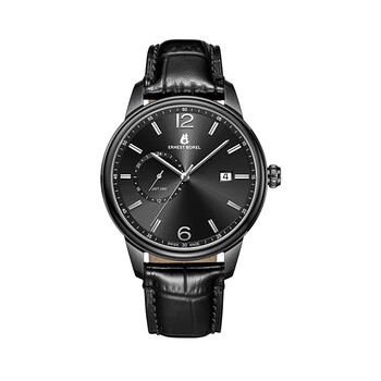 依波路(BOREL)瑞士手表都市系列两地时时尚商务黑盘皮带石英机芯男士手表礼物