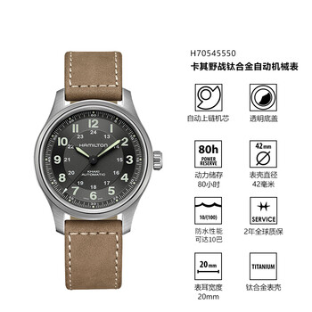 汉米尔顿(Hamilton)汉密尔顿男款手表军表卡其野战钛金版42灰盘皮带瑞士手表机械表