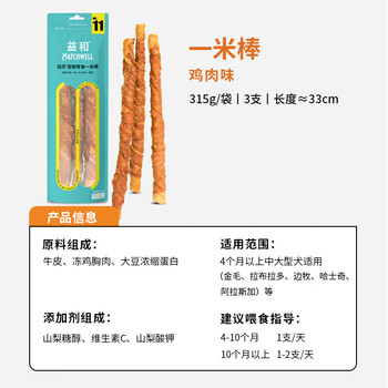 益和(MATCHWELL)狗零食磨牙棒缠鸡牛肉干洁齿宠物中大犬金毛边牧 鸡肉一米棒315g