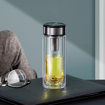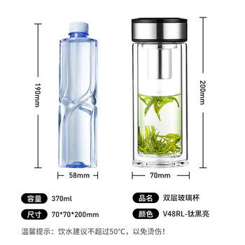万象(WANXIANG)双层玻璃杯V48RL商务礼盒装茶杯钛黑亮带滤网水杯车载便携办公杯