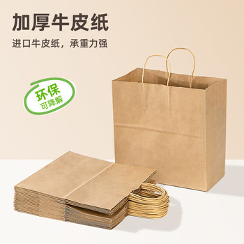 一次性牛皮手提打包纸袋28*18*28cm 20只装