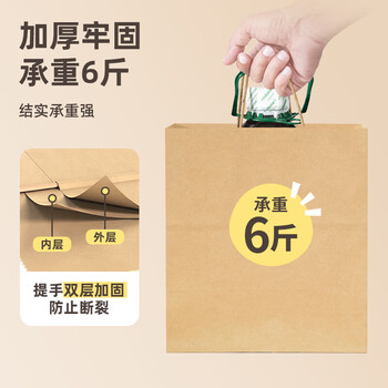 特美居(temeiju)一次性牛皮纸袋手提袋外卖打包袋食品奶茶礼品包装袋子特大号20只