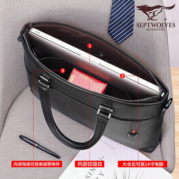 七匹狼公文包商务男士头层牛皮手提包14英寸笔记本电脑包节日礼物文件包