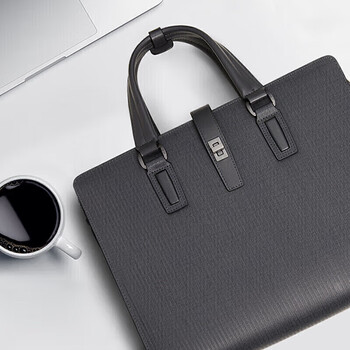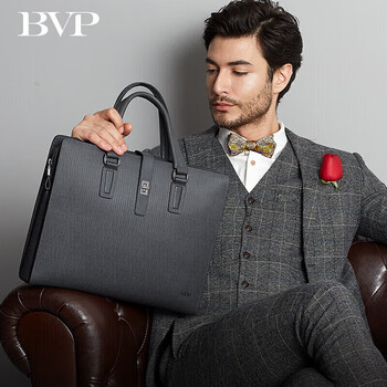 BVP男士手提包商务公文包男牛皮锁扣男包横款手提包多功能电脑包