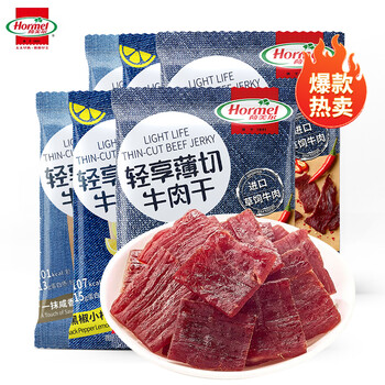 荷美尔(Hormel)轻享薄切牛肉干(咸香+辣味+黑椒各2包)35g*6袋(临期剩余5月 )