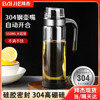 拜杰高硼硅玻璃油壶自动开合油瓶防漏油厨房专用香油酱油醋壶调料瓶