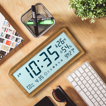 摩门(Momen)闹钟 学生创意简约夜光时钟简约钟表床头多功能懒人钟桃木色 TM03开学季