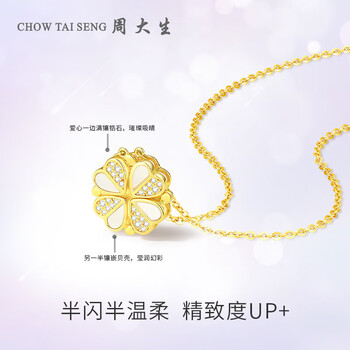 周大生【生日礼物】心动四叶草项链银套链S925银镶嵌送女友送老婆