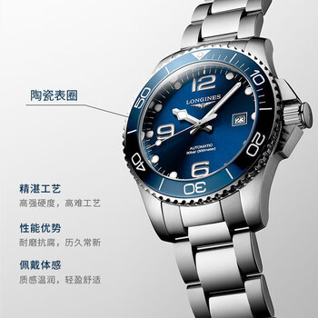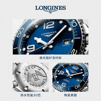 浪琴(LONGINES)瑞士手表 康卡斯潜水系列 男士钢带机械表L37814966
