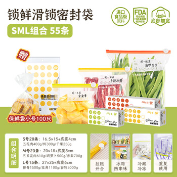 锁鲜滑锁密封袋大中小55只+赠100只保鲜袋
