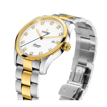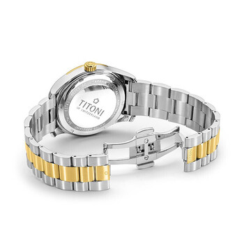 梅花(Titoni)瑞士手表男士机械表空中霸王系列间金钢带83743-SY-582送男友礼物