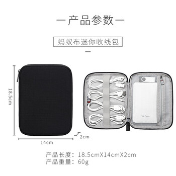 必优美 耳机数据线收纳包数码多功能电源充电器盒硬盘U盘旅行便携整理袋 迷你黑色DISXS-MYB