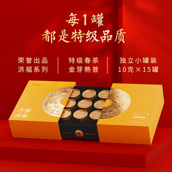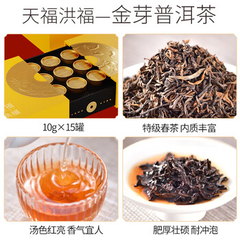 天福茗茶普洱茶 金芽普洱熟普熟茶特级150g礼盒装2015年原料茶叶送礼